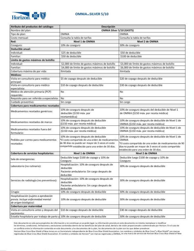 2023 OMNIA Silver 5-10 (G4375) Benefits Summary (Spanish) 2023 OMNIA Silver 5-10 (G4375) Benefits Summary - On Exchange (Spanish). This document is for informational purposes only and does not constitute a binding agreement.