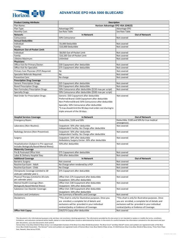 Horizon Advantage EPO HSA 5000 BlueCard Horizon Advantage EPO HSA 5000 BlueCard Benefits Summary - Level Select. This document is for informational purposes only and does not constitute a binding agreement.