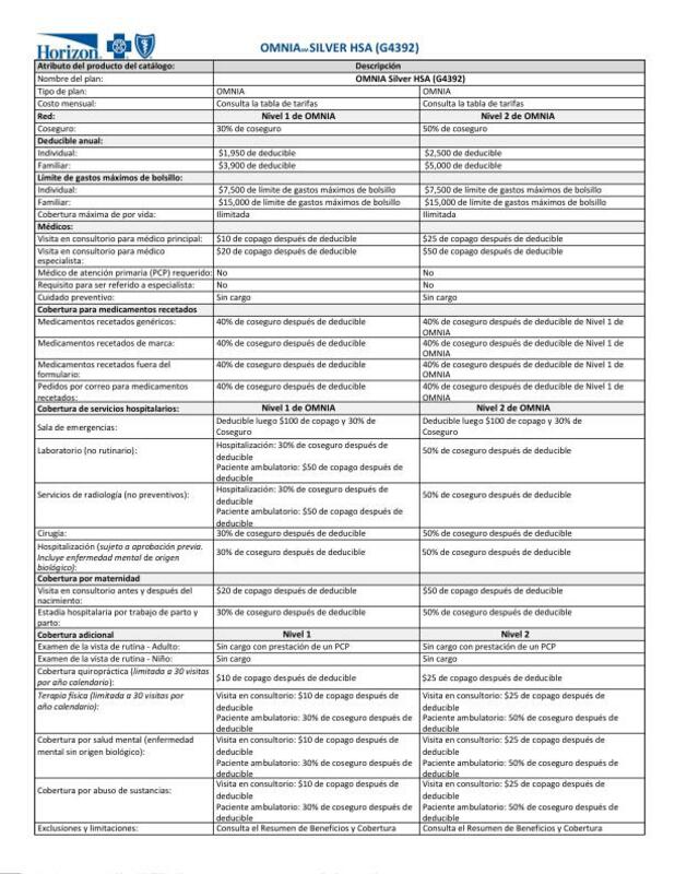 2023 OMNIA Silver HSA (G4392) Benefits Summary (2-50) - Off Exchange (Spanish) 2023 OMNIA Silver HSA (G4392) Benefits Summary (2-50) - Off Exchange This document is for informational purposes only and does not constitute a binding agreement.
